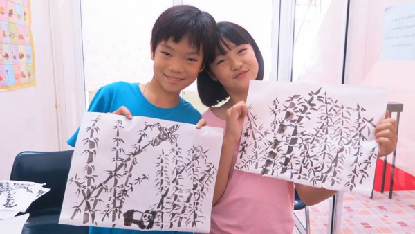 วันนี้เอธี่กับพอล ได้เรียนเขียนพู่กันจีนค่ะ